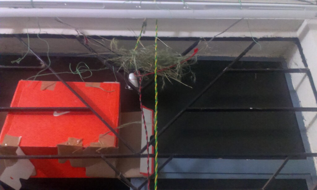In the days after that I regularly found them sitting in my opened windows. One day a pair brought in twigs and grasses - a clear attempt to build a nest in my window bars. I cautiously decided to allow them to build the nest by keeping my windows open everyday and see what would happen. I placed an empty cardboard box hoping that they would build nest inside it. One night when I returned back to my hostel room, I found a partly built nest! I was wonderful and unexpected.