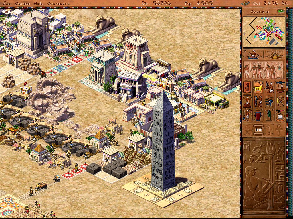 Eventually the settlement grows and becomes prosperous. In the game, I had 4,500 people at one point of time and 56,000 Debens of cash. There is so much labor force available and the I set out to meet pharoah's ultimate goal: building obelisks and a mudbrick pyramid.